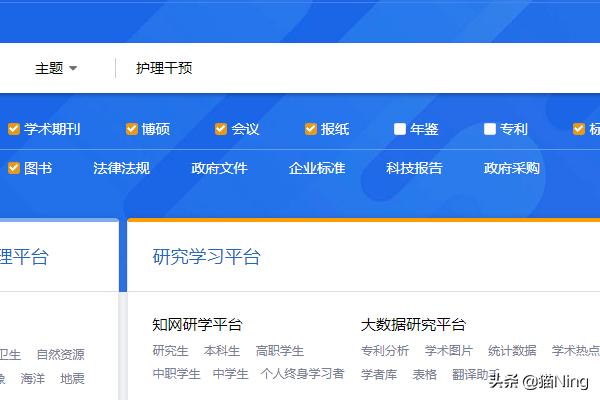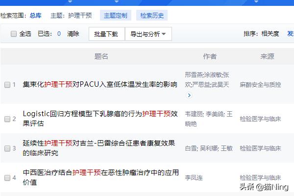 2.在检索栏输入要检索的内容,如“护理干预对乳腺癌术后患者”或者是“护理干预”等