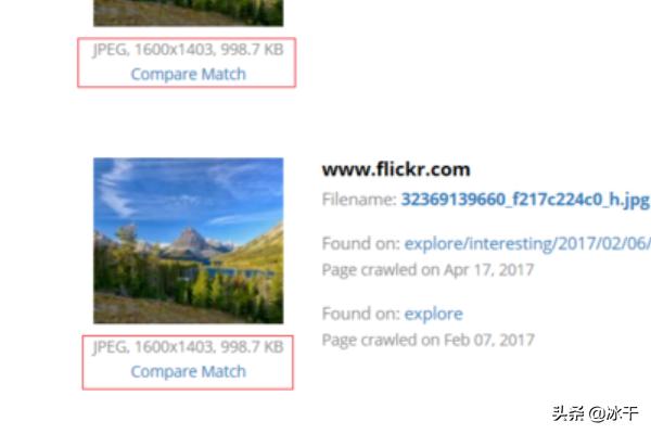5、现在显示在最上面的图片就是最大的。红框里显示了图片的格式、大小和体积。我们可以看到,前两张图片(分别来自reddit和flickr)是最大的。它们就是原图。